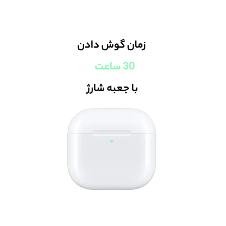 حداکثر 5 ساعت حالت پخش صدا (تا 30 ساعت با محفظه شارژ) حداکثر 4.5 ساعت حالت مکالمه (تا 20 ساعت با محفظه شارژ)